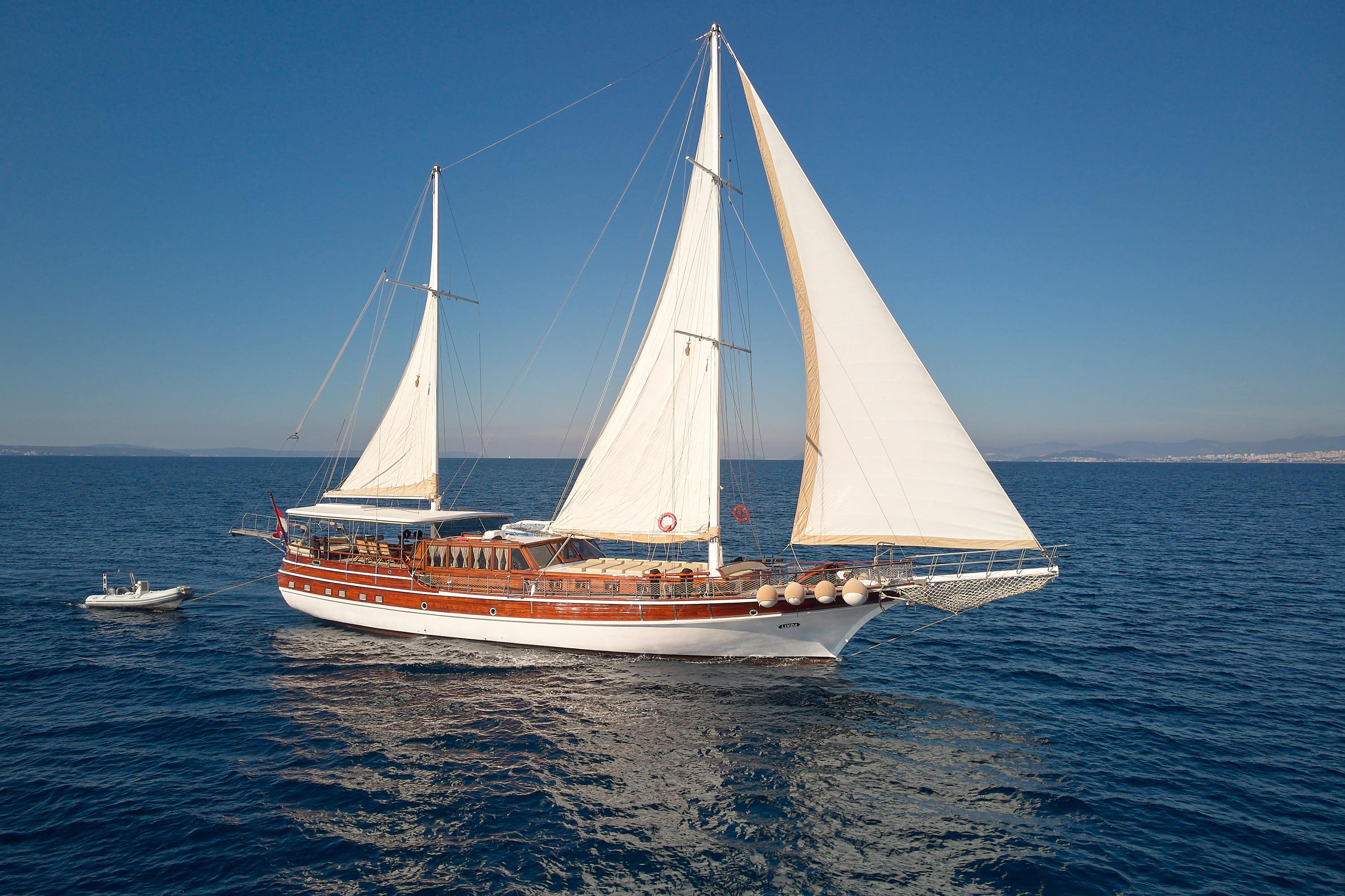 Linda is a 32-meter luxury Ketch design gulet yacht with two masts. Onboard there is a very motivated crew, always trying to satisfy their guest during the cruise, huge effort on food presentation. Gulet Linda features a new hardtop on the Aft deck and 2 double cabins can be converted into twin cabins.